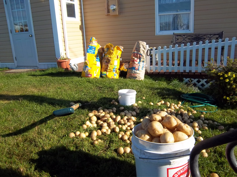 I stopped to admire another neighbour’s potato harvest. Of course, he insisted I take a bagful.