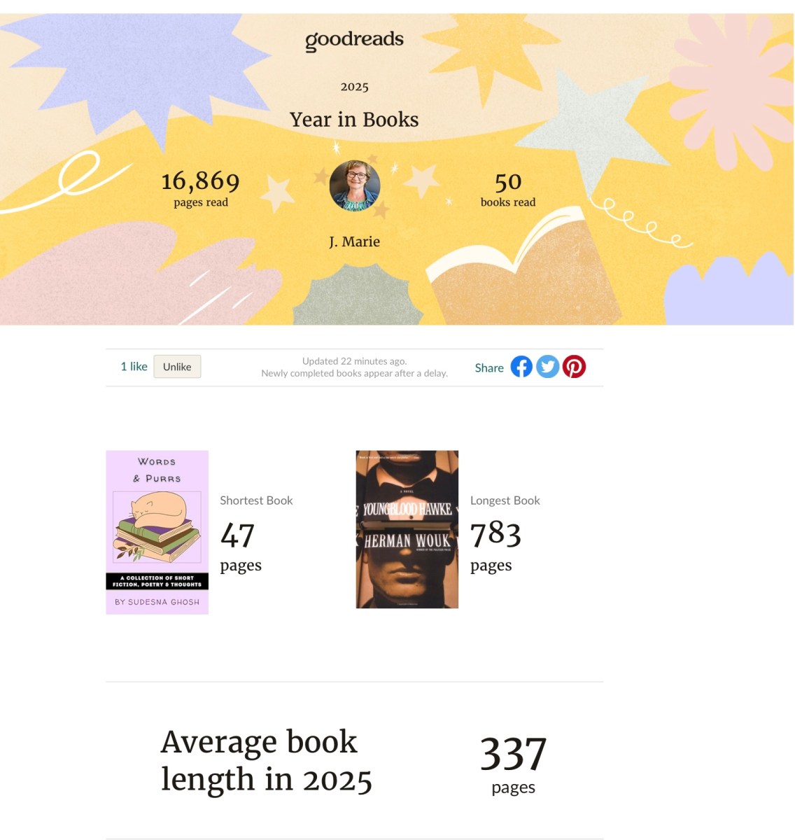 I have also reached my 2025 Reading Challenge as of yesterday, with fifty books read, all accounted for on Goodreads.