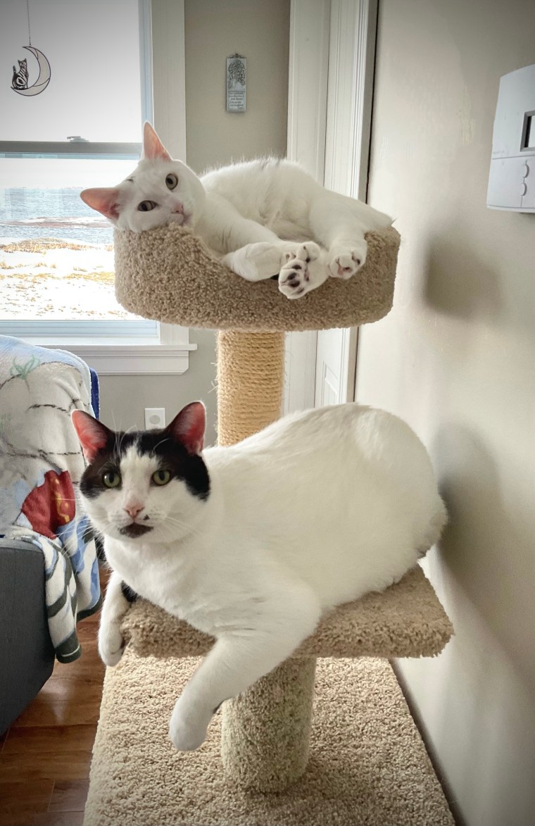 When there are cats in the pictures, I don’t see anything else. I’ve had cats with a lot of white in them but your cats are bright white. Sasha has a white belly but prefers to distribute her white floofs all over the floor.