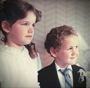 Back in the day when my sister was planning her wedding, she asked my children to stand as flower girl and ring bearer. This photo has been on display here in my home ever since.