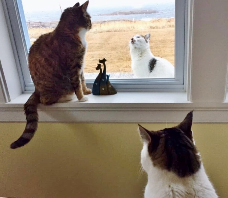 Then there was a visit from another cat on Monday. Maisie did a double take.