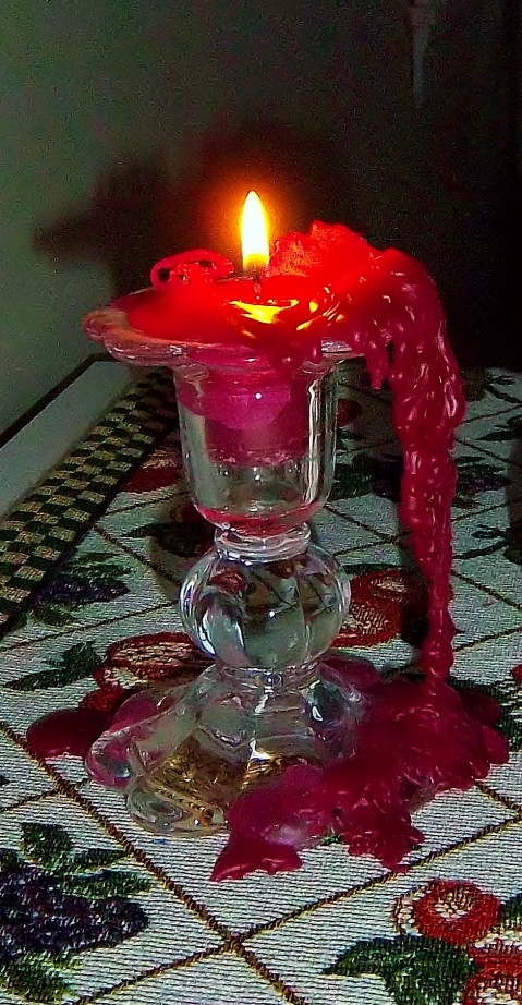 It worked! We set up a game of Scrabble and the candles on my writing desk, poured some wine, and played while listening to digital music. You wouldn’t believe how much heat comes from candles in a small area! We were toasty warm until it was time to blow them out and turn in – cats and all, of course.