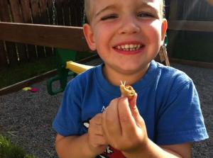 …to collecting Star Wars figurines! And like most little boys, J loves to get up close and personal with wiggly, wriggly things.